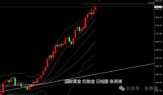 10月6日:黄金市场上周:国际黄金继续走强收涨,连续第7周收阳,相对于前几周,多头动力有所加强,并冲出布林带之外,有一定的回调需求,但由于多头动力持稳,回撤预计也是做多机会,上方将继续等待触及3975-4000美元区域目标。