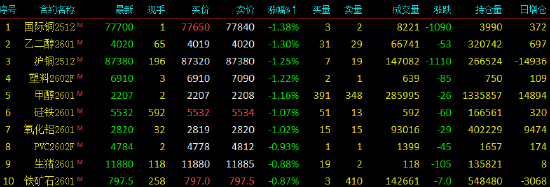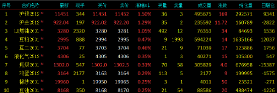 2025年10月31日,商品期货开盘,沪银、、沪金主力合约涨超1%。跌超1%。