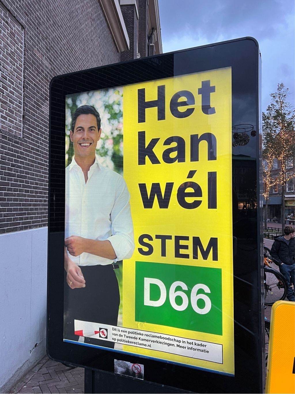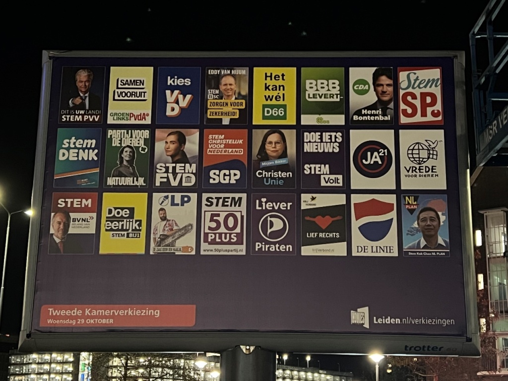 荷兰莱顿中央火车站门口的政党宣传牌。本文图片均为笔者拍摄