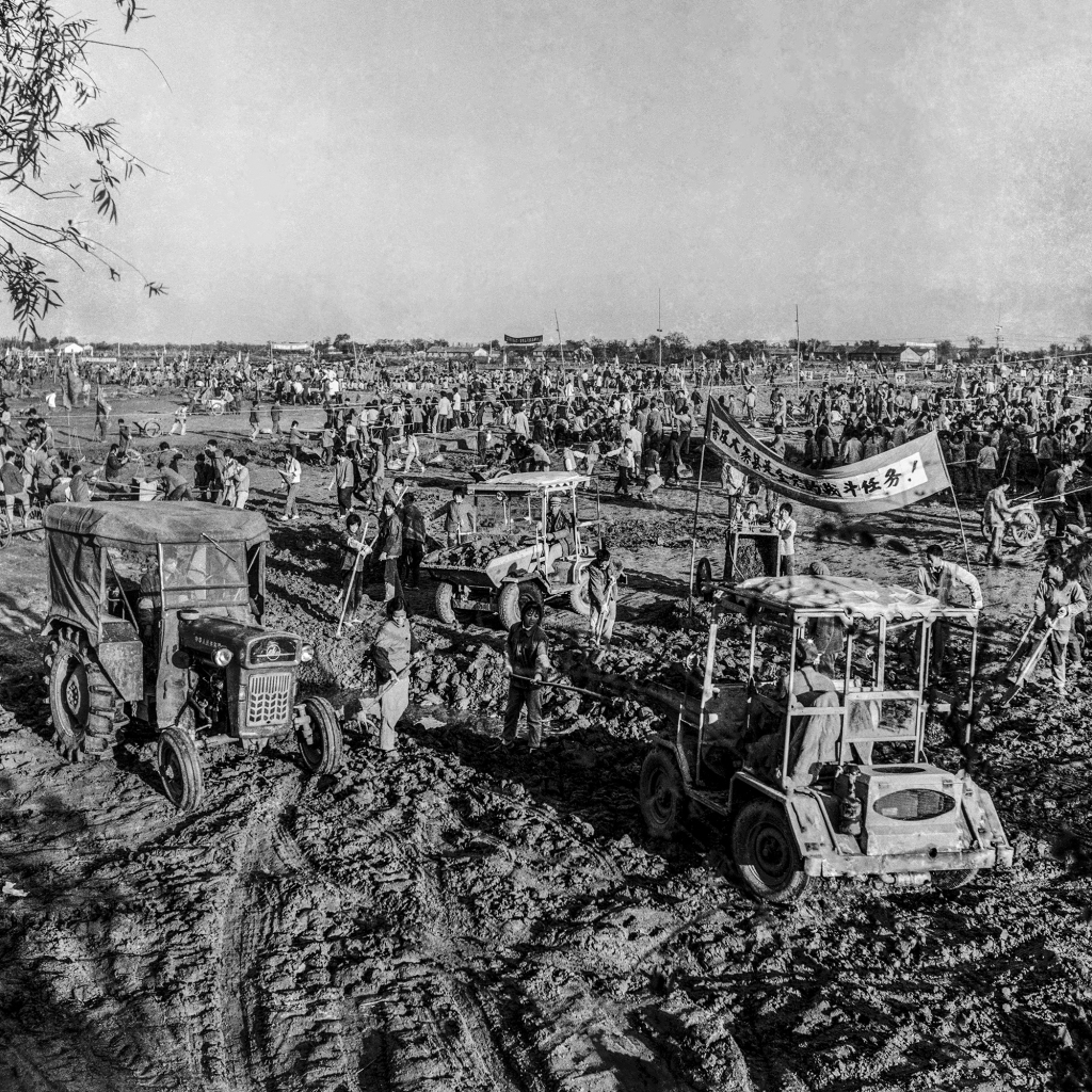 工地上人山人海,远远看去,宛如一条蠕动的长龙。人气、烟气在上空缭绕。两岸红旗招展,高音喇叭播送着亢奋的乐曲。人们挑着泥担,在田野里捷步如飞。