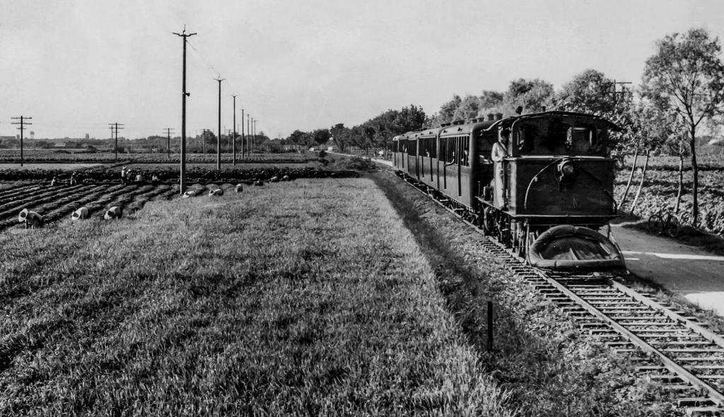 一边是农民们在收割稻谷,一边是小火车在田野上奔驰(上世纪70年代的川沙还有小火车为交通工具,1975年拆除)。好一派田野上的繁忙景象。 1974年摄于王港。