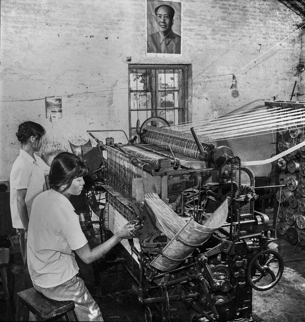 《机械编织》。这是家庭的小型编织车间。1982年摄于蔡路。