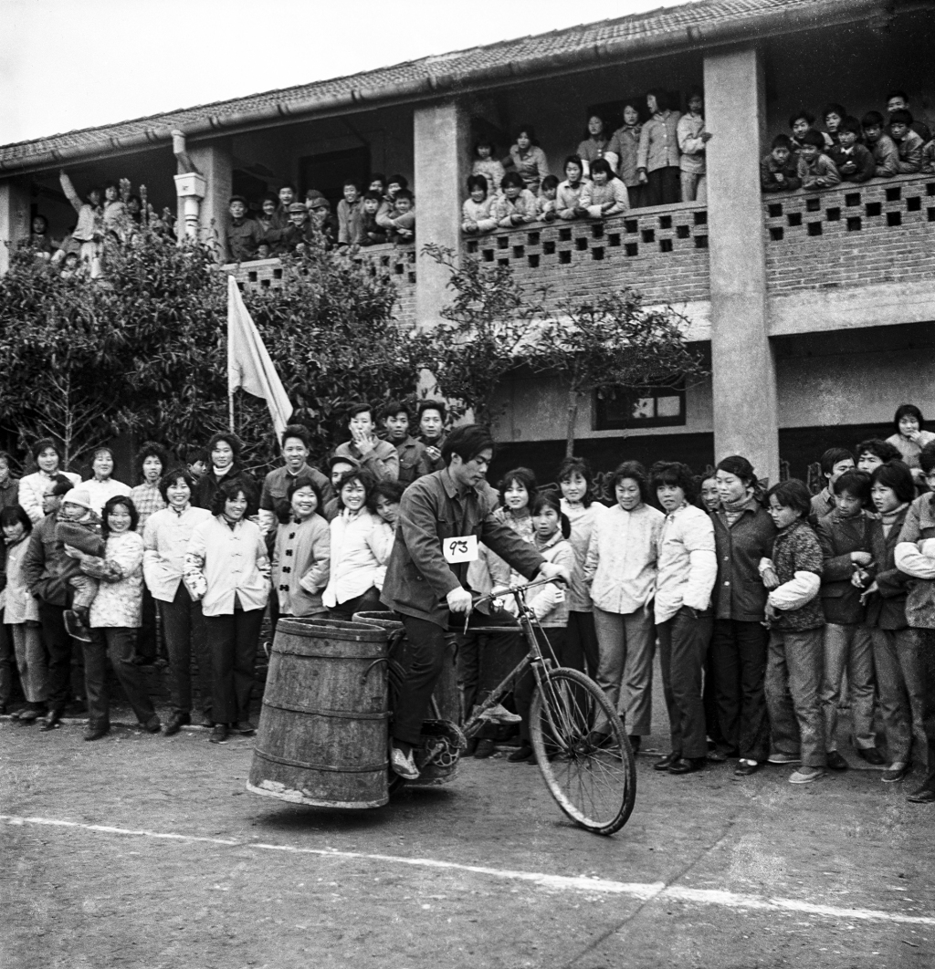 《自行车比慢》为安全生产,提高车技,孙桥的农民运动会上特意增设了自行车比慢项目,丰富了运动会内容。1987年摄于孙桥。