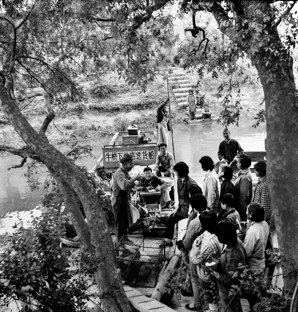《送货下乡》。牛桥下伸店经常以木船为交通运输工具,给农民兄弟输送生产工具和各种生活上的必需品。 1979年摄于黄楼。