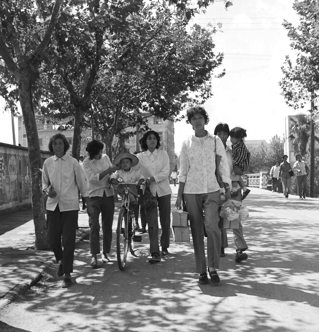 《采购回家》。川沙原在浦东开发前是县城。每当双休日,周围几个乡镇的百姓都喜欢结伴进城游玩购物。图为人们购物后满载而归。1985年摄于川沙。