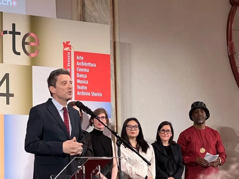 威尼斯双年展主席皮特朗格洛布塔福科(Pietrangelo Buttafuoco)在第60届威尼斯双年展艺术展开幕式上