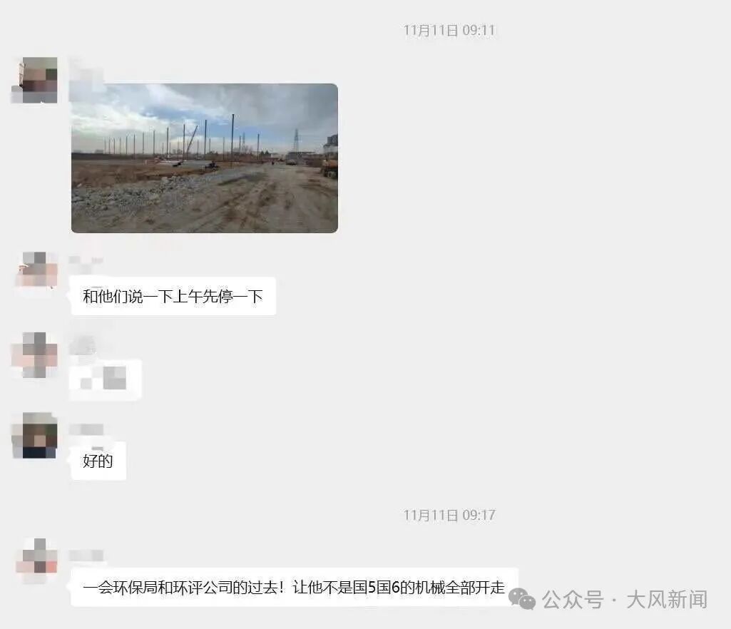 11月10日,王涛向咸阳市生态环境局举报,被告知此事将由咸阳市生态环境局永寿分局负责处理。“11月11日下午,永寿分局原本计划对这座在建‘商混站’进行突击检查。”王涛说,“可就在检查前的11月11日上午,商混站的工作群里就有人通风报信,说下午环保部门要来检查。”