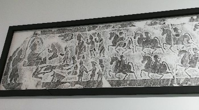 图4 绥德县白家山村画像石拓片及其局部(笔者拍摄)