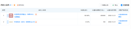 12月16日金融一线消息,天眼查App显示,厦门翔南圆火企业管理合伙企业(有限合伙)12月16日成立,执行事务合伙人为中保投资(深圳)有限责任公司,出资额50亿人民币,经营范围为企业管理、企业管理咨询、以自有资金从事投资活动,由中国保险投资基金(有限合伙)、中保投资(深圳)有限责任公司共同出资。