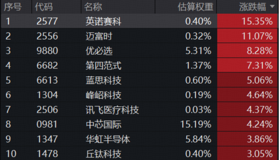 成份股方面,英诺赛科涨超15%,迈富时涨超11%,优必选涨超8%,第四范式涨超7%,、讯飞医疗科技、、涨超4%。