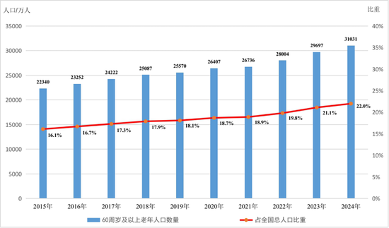 2024年年末人口中,60周岁及以上人口达到3.1亿,占比22%,老龄化趋势加速。